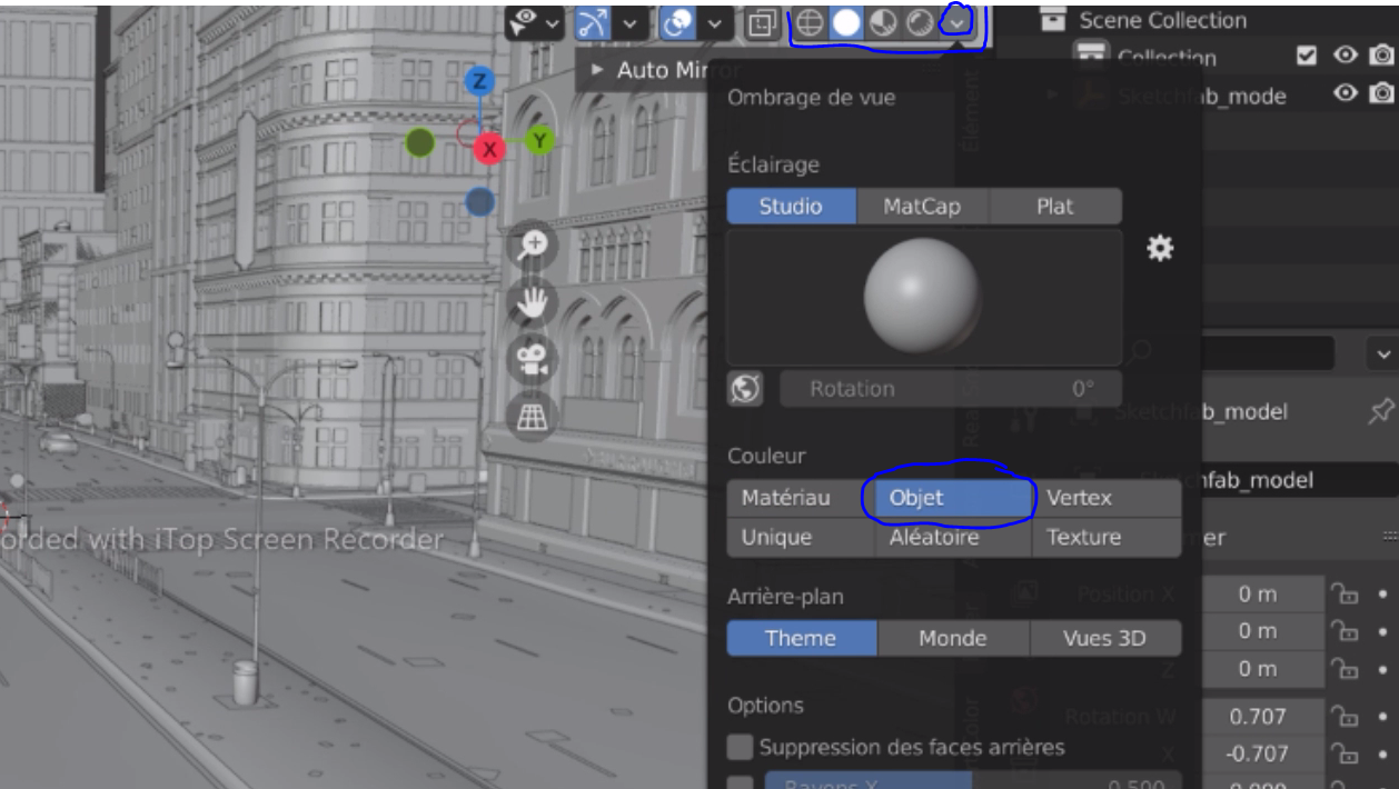- Utilisez une pipette pour récupérer la couleur d'un objet dans le viewport et l'appliquer à la couleur principale.